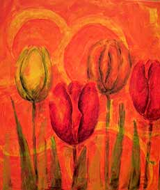 Hochsommer auf frischen Streifen, Acryl auf Leinwand   Tulpenwuchs, Acryl auf Leinwand
